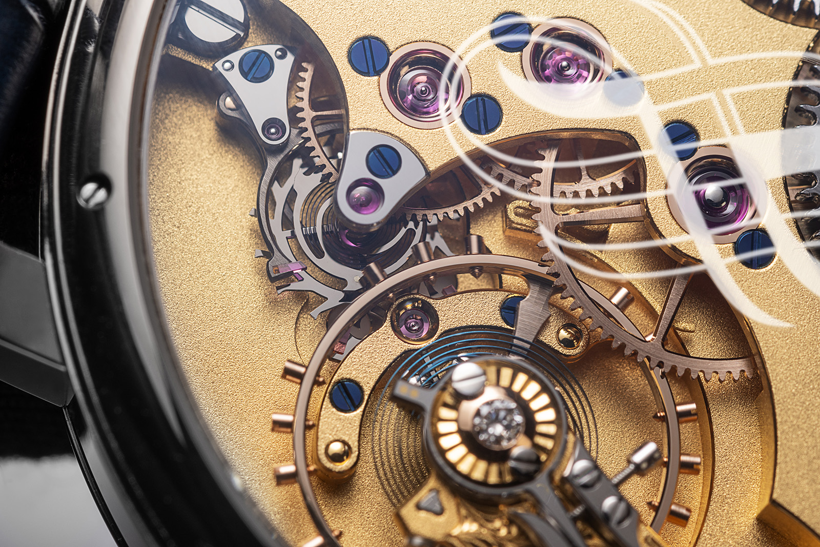 Meanwhile, the inner tourbillon cage drives the escape wheel around the fixed fourth wheel. So, it would not be correct to say that the one‑second remontoir here directly drives the escape wheel, as in the Pratt/Gafner model (which will be detailed later), but that it drives the cage, which in turn drives the escapement, which impulses the balance wheel. Clearly, every effort was made to keep every component in this assembly as light as possible, hence the ultra skeletonized escapement wheel created with MEMS (Micro‑Electro‑Mechanical Systems) technology. The end result is a watch that is not only a work of technical brilliance, but also extraordinarily beautiful to watch.