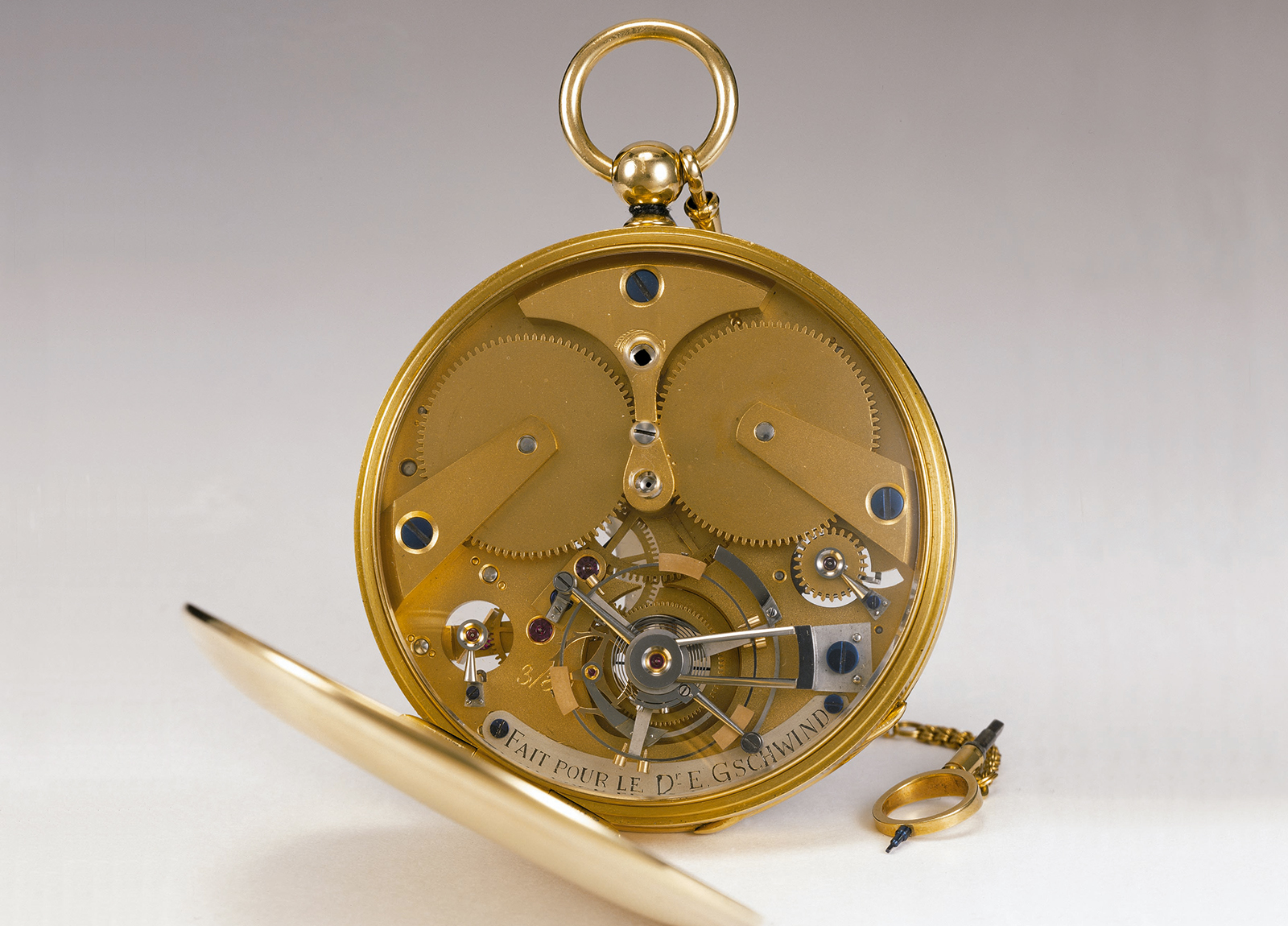 - In 1984, Journe was commissioned by the collector Dr. Eugen Gschwind to create a pocket watch with a tourbillon and remontoir d’Égalité. Visible at around 7 o’clock is the blade spring that is tensioned by a lever carrying a remontoir wheel. The same principle was later adapted for his wristwatches