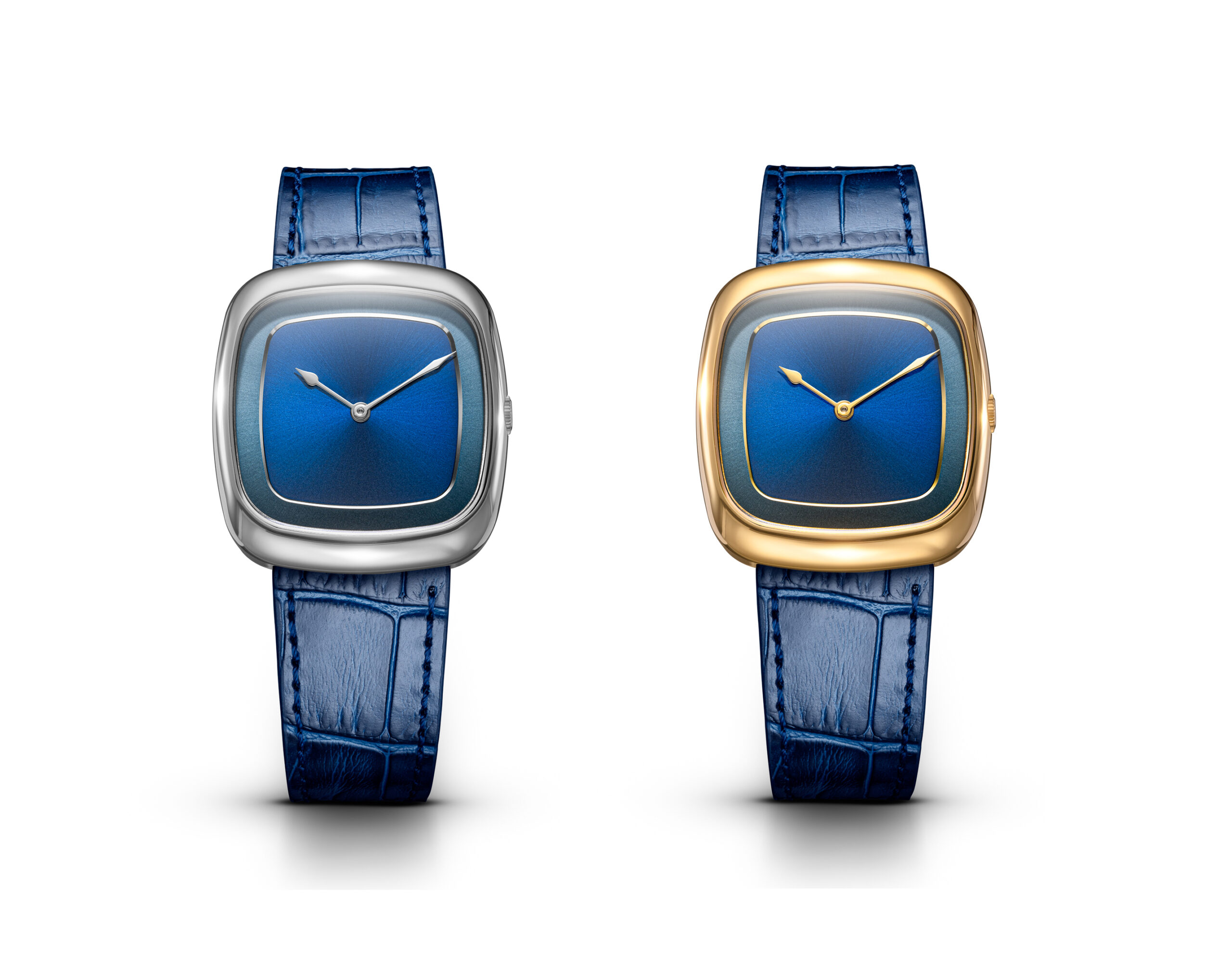 Simply put, the Dennison x Collectability watch is beautiful. The softened rectangular case shape is perhaps best described as a ‘TV” shape is offered in steel of gold PVD, and it’s clearly the heart of this design. The crown is recessed to not mar the lines too much, and the silhouette is echoed by the chapter ring on the dial, a detail in either steel or gold to match the dial, as are the refined hands. Really, though, the most remarkable thing about the dial is the two-tone sunray effect; the inner dial is a deep, rich blue, while the outermost portion is a paler, sky blue. It’s a deceptively simple design overall, but one that draws from a rich legacy of design history and seamlessly integrates it into a 37mm package that is polished, both literally and figuratively.