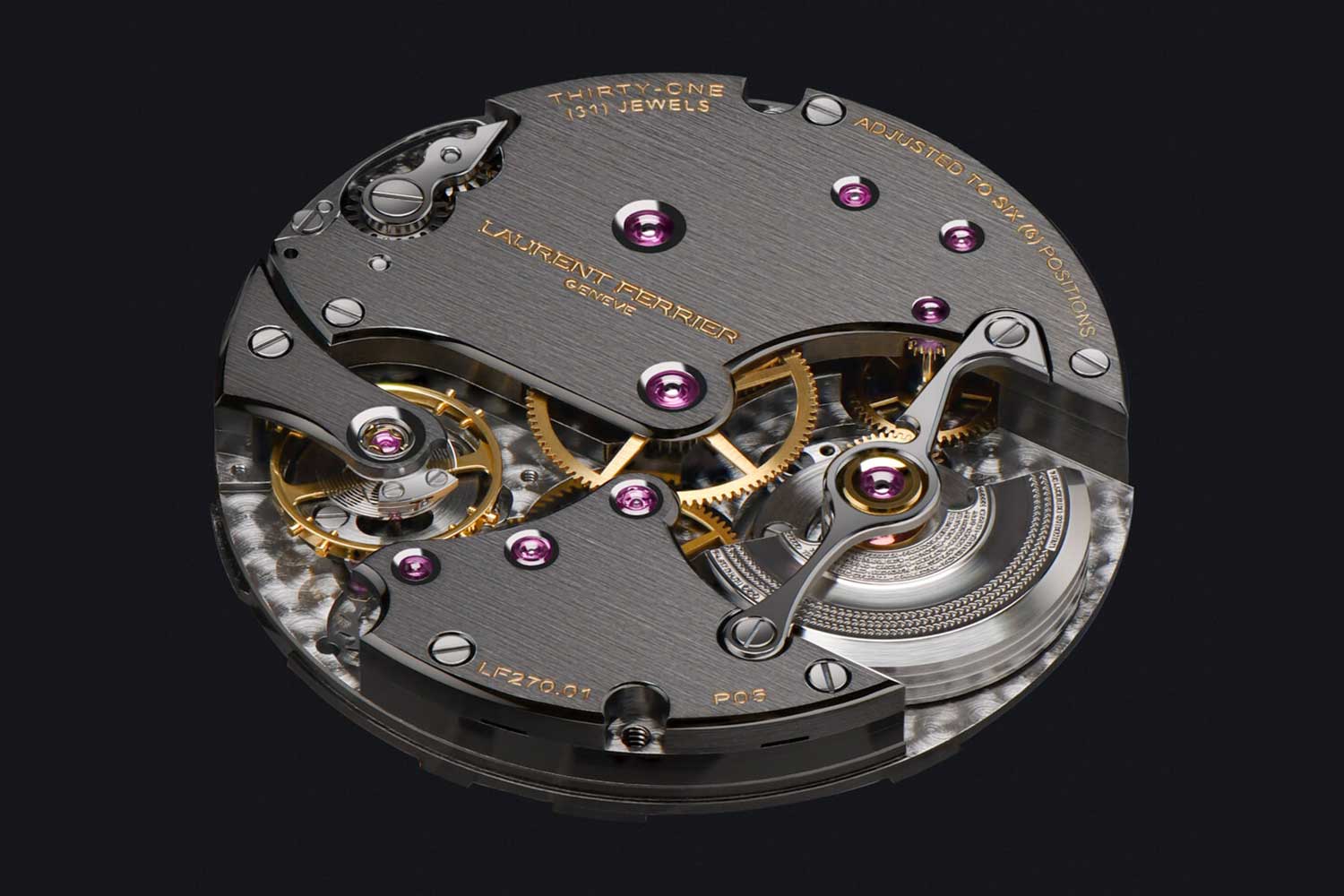 In a sports watch, the LF 270.01 required a few technical updates to ensure durability and stability. The natural escapement, a sophisticated feature cherished by enthusiasts of horological history, has been replaced with a Swiss lever escapement, which is standard in sports watches and provides greater stability during active wear. The winding system has also been upgraded: the earlier ratchet-click mechanism has been replaced with a unidirectional ball-bearing system, offering superior shock resistance and reliability.