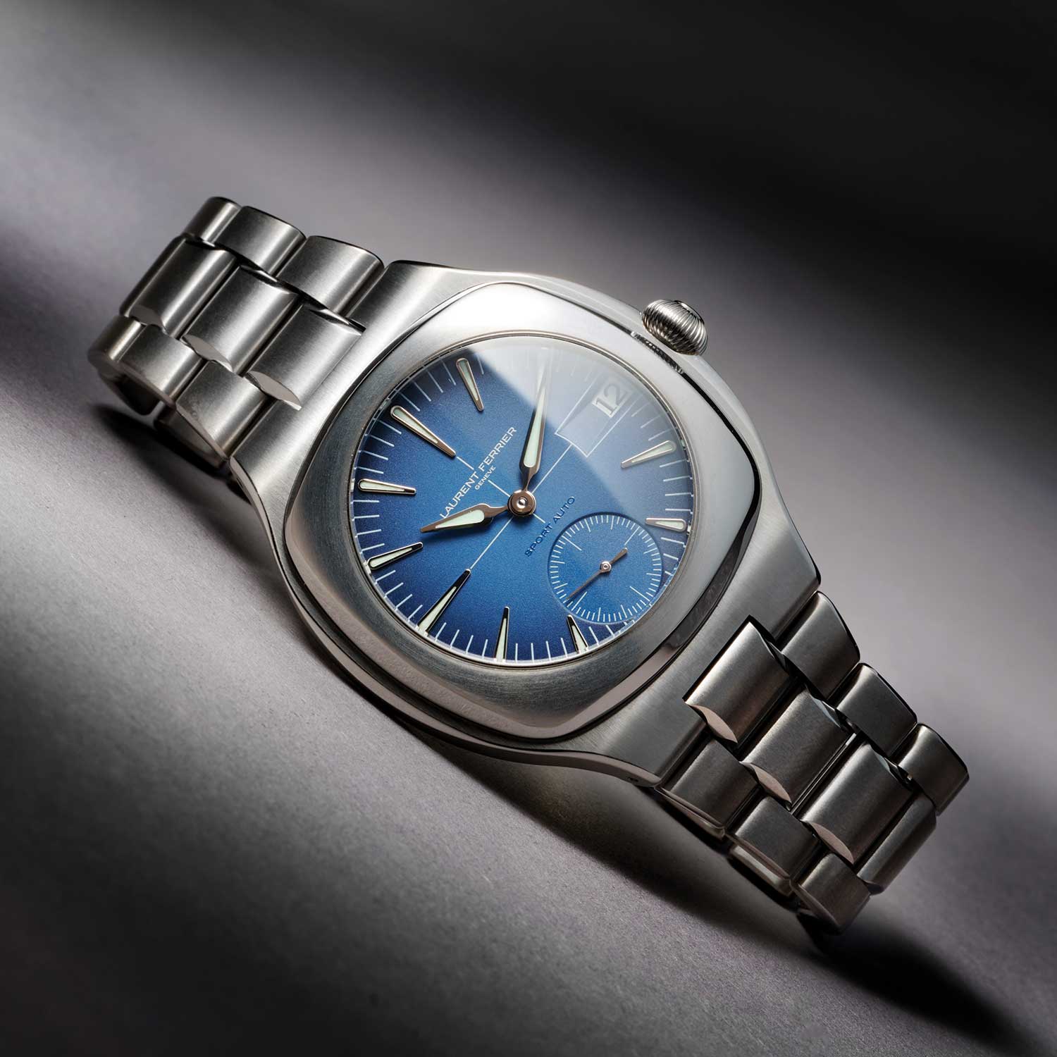 In 2020 the Grand Sport Tourbillon was fitted with an integrated bracelet, something Laurent Ferrier had not previously offered. Yet, as is often the case with integrated-bracelet sports watches, collectors hoped for something simpler and more restrained. That direction was fully realised in 2022 with the introduction of the Sport Auto. Conceived as an evolution of the Grand Sport rather than a departure from it, the watch dispensed with the tourbillon in favour of a time-only display and adopted more compact dimensions. At 41.5 mm wide and 12.25 mm thick, it was smaller and thinner and, as a result, more wearable and comfortable than the original 44 mm Grand Sport.