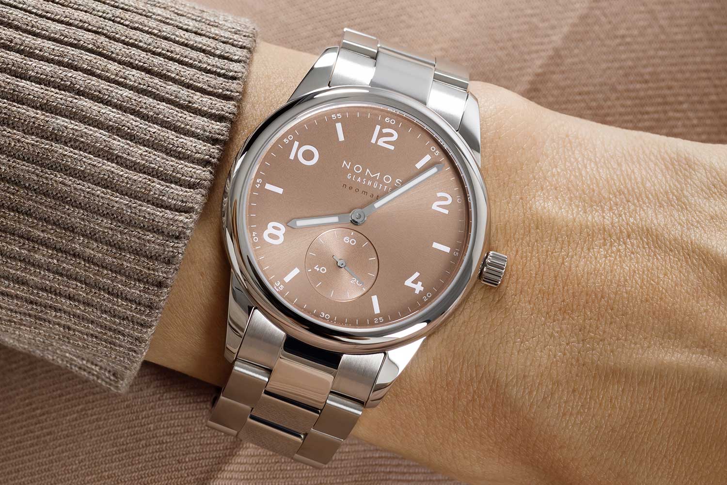 Ever since the Rolex bubble left our stratosphere, there has been a cacophonic craving for something, anything, to fill the hole left by the Oyster Perpetual. A couple of release cycles ago, thanks to the OP line blowing up the internet with the green, red, yellow, blue, and pink dials, and NOMOS soon after releasing 36 and 38 mm versions of the Club Campus in a vivid fuchsia and a laid-back purple, watch lovers started to draw the line between the two families in a way that might have seemed farcical several years ago. All those 36/38 mm Club Campuses needed was a bracelet. If only NOMOS could produce a solid — it really didn’t need to be remarkable — bracelet for the Club collection it would simultaneously banish the old concerns that the Club’s lugs were overlong and also slot right in as a ready-to-wear Oyster Perpetual killer.