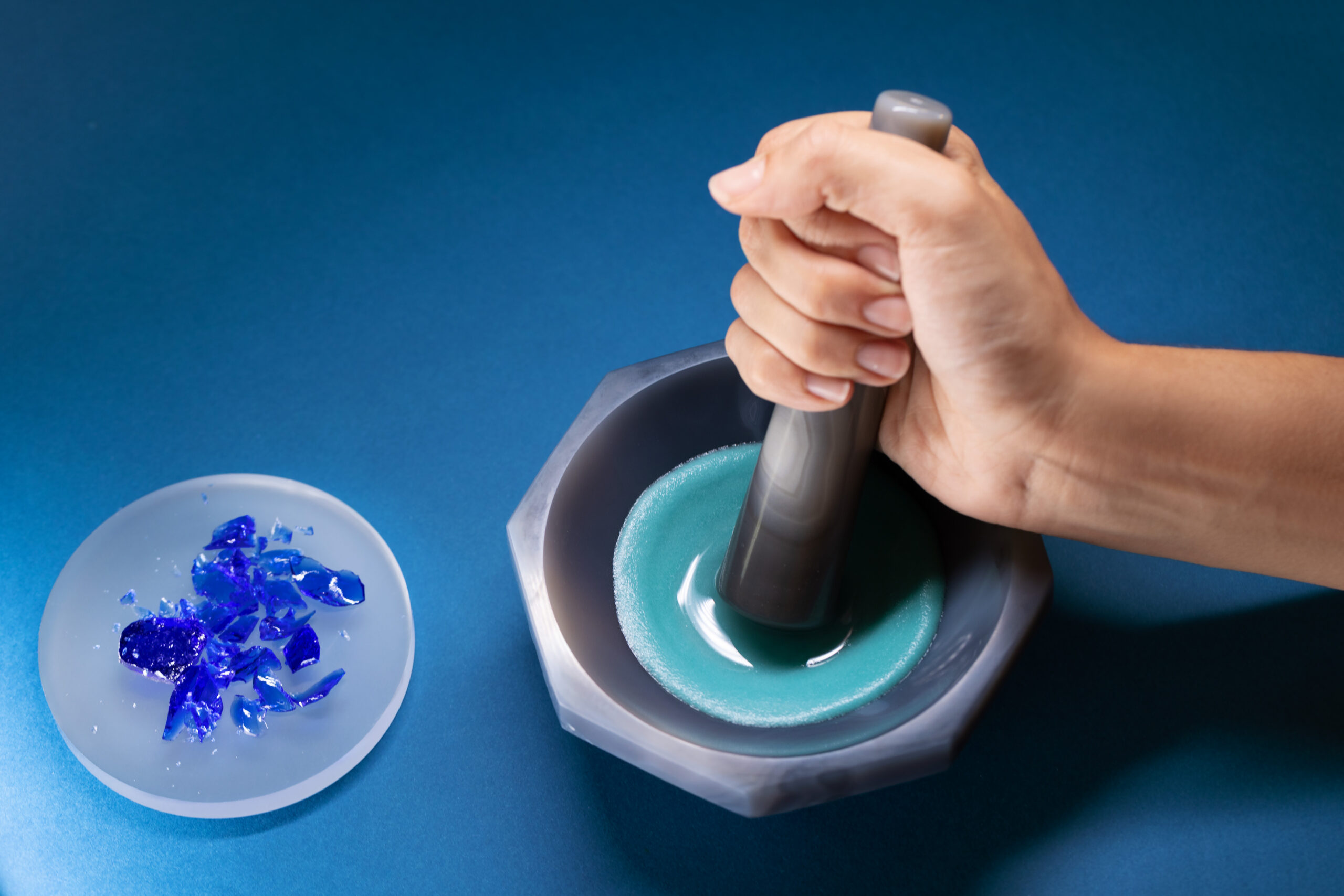 Raw enamel is ground and refined before application—a meticulous, almost meditative step in achieving Tiffany’s distinctive hue