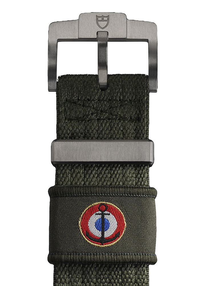 The creativity of the colorway isn’t all this piece has going for it from a visual perspective. While it has always been commonplace for Marine Nationale pieces to be ordered without a metal bracelet and, instead, worn on fabric straps, the use of this particular shade of military green (embellished by the super cool embroidered MN keeper) compliments the watch head’s color scheme perfectly. This is perfectly logical as red and green are complimentary colors, sitting directly opposite one another on a color wheel (just as blue and orange do). With neutral tones like black and cream in between these two shades, the overall effect is easy on the eye but still stark and masculine. This apparent contradiction likely comes down more to the cultural perception of the colors and their areas of application.