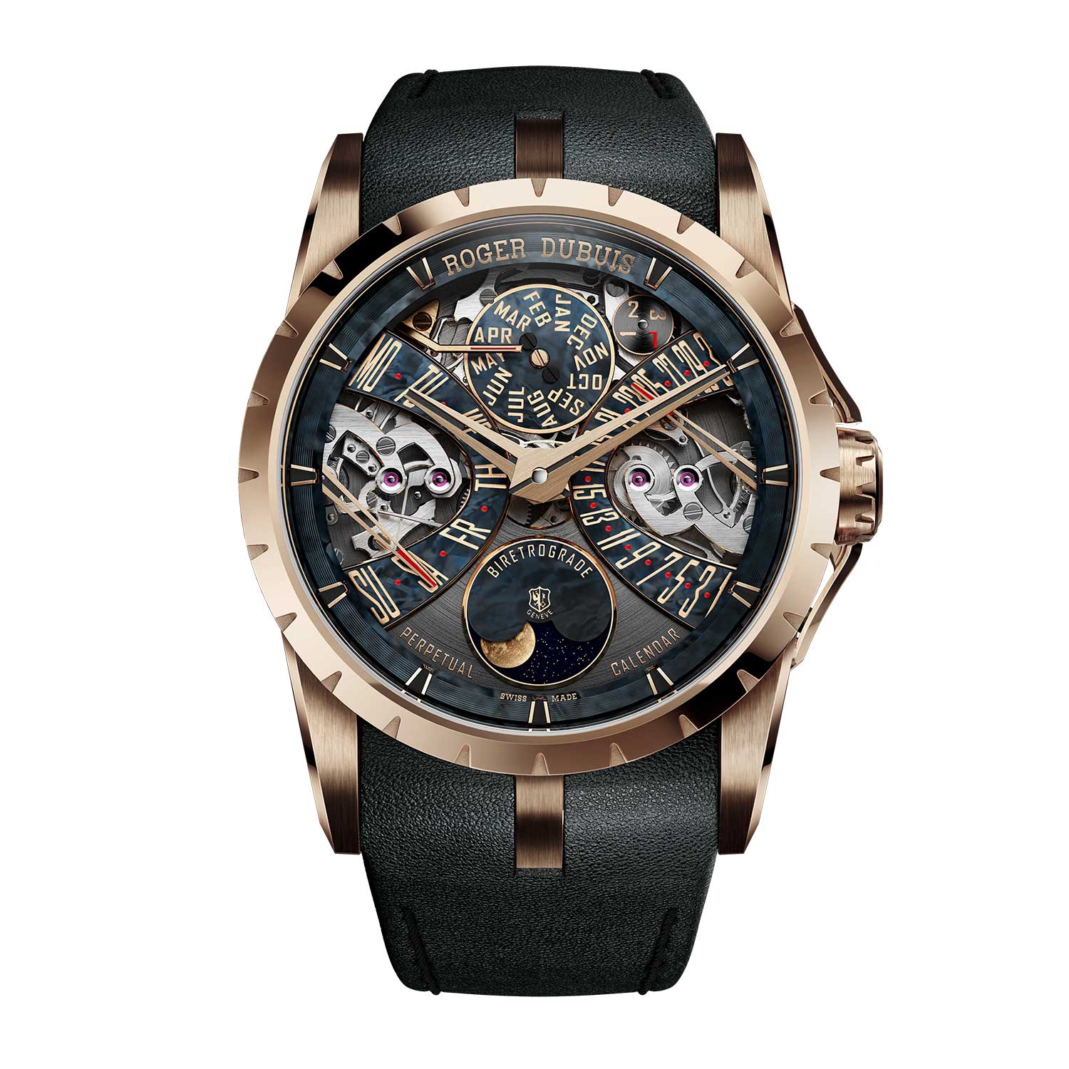 The Roger Dubuis Excalibur Biretrograde Perpetual Calendar’s new Caliber RD850 brings a month corrector that makes regulation feel intuitive and is a beautifully visual achievement. The nine distinct layers of the open-worked dial, presented in a new “Astral Blue” hue, along with the signature biretrograde mechanism — co-patented by Roger Dubuis and Jean-Marc Wiederrecht in 1989 — sit in what I can only describe as perfect harmony. A beautiful moonphase shows the waxing and waning of the moon, timing it almost exactly as it appears in the sky. I tried this 40mm rose gold beauty on, and honestly, I just didn’t want to take it off my wrist.