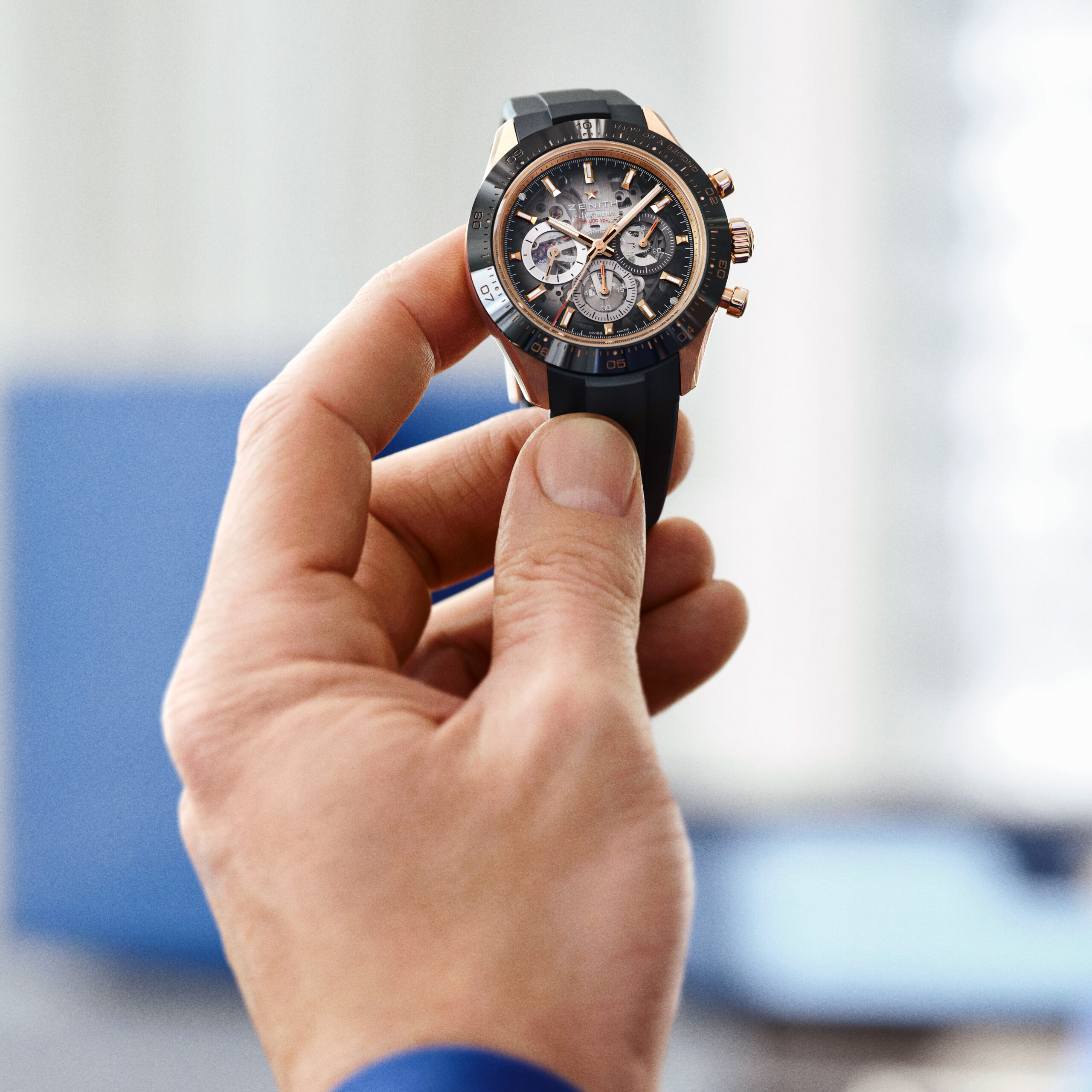 With the Chronomaster Sport Skeleton, Zenith shifts the focus from surface treatment to visible mechanics. The smoked sapphire dial opens up the watch to reveal the architecture of the El Primero 3600SK underneath, turning one of the brand’s best-known movements into the visual centrepiece of the design. At the same time, the watch holds on to the elements that define the collection, from the 41mm case and ceramic bezel to the overlapping counters, which in different executions continue to echo the original El Primero of 1969. Offered in steel with black or green ceramic bezels, in rose gold on rubber, and in a 10-piece rose gold limited edition with bracelet and baguette-cut diamond bezel, the new skeletonized range gives the Chronomaster Sport a bolder and more technical identity. Zenith also introduces a new patented folding clasp on the steel models, adding tool-free micro-adjustment and a more ergonomic construction that extends the idea of performance beyond the movement itself and into everyday wear.
